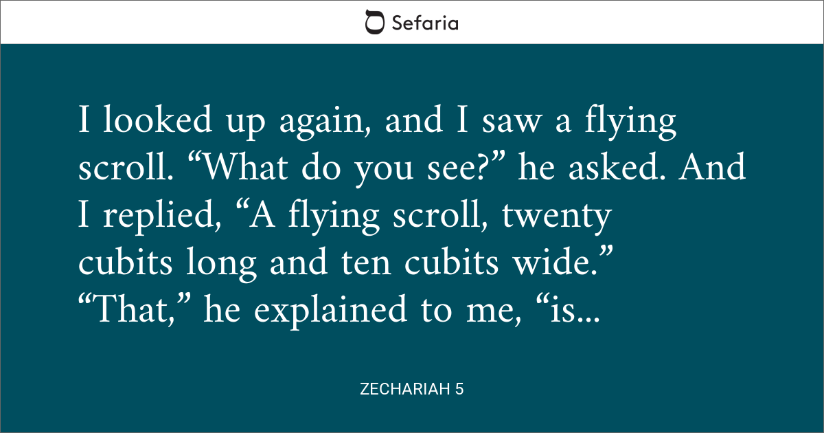 1 Then I raised my eyes again and saw a flying scroll. Web Zechariah - Chapter 5. For according to what it says on one side every thief will be banished and according to what it says on.